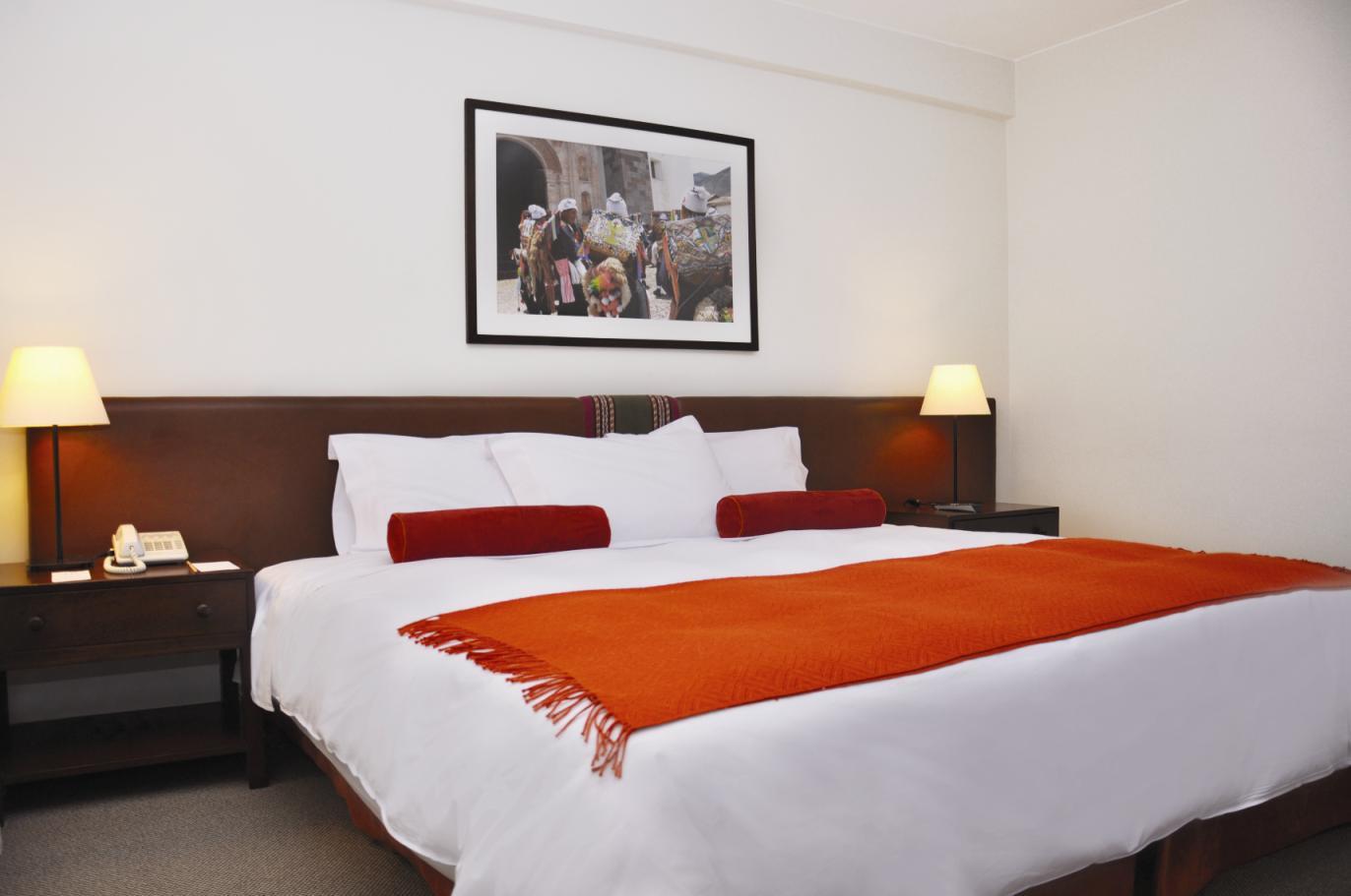 Standard rooms offer either one double bed or two singles for a twin configuration. Upgrading to a Junior Suite will give you a King-sized bed and a bit more room. All offer spacious en-suite bathrooms, safety deposit boxes, Wi-Fi, writing desks and heating. Rooms have simple modern décor, with dark wooden furniture, colorful photography of contemporary Cusco on the walls and small touches of Andean fabrics which add warmth.