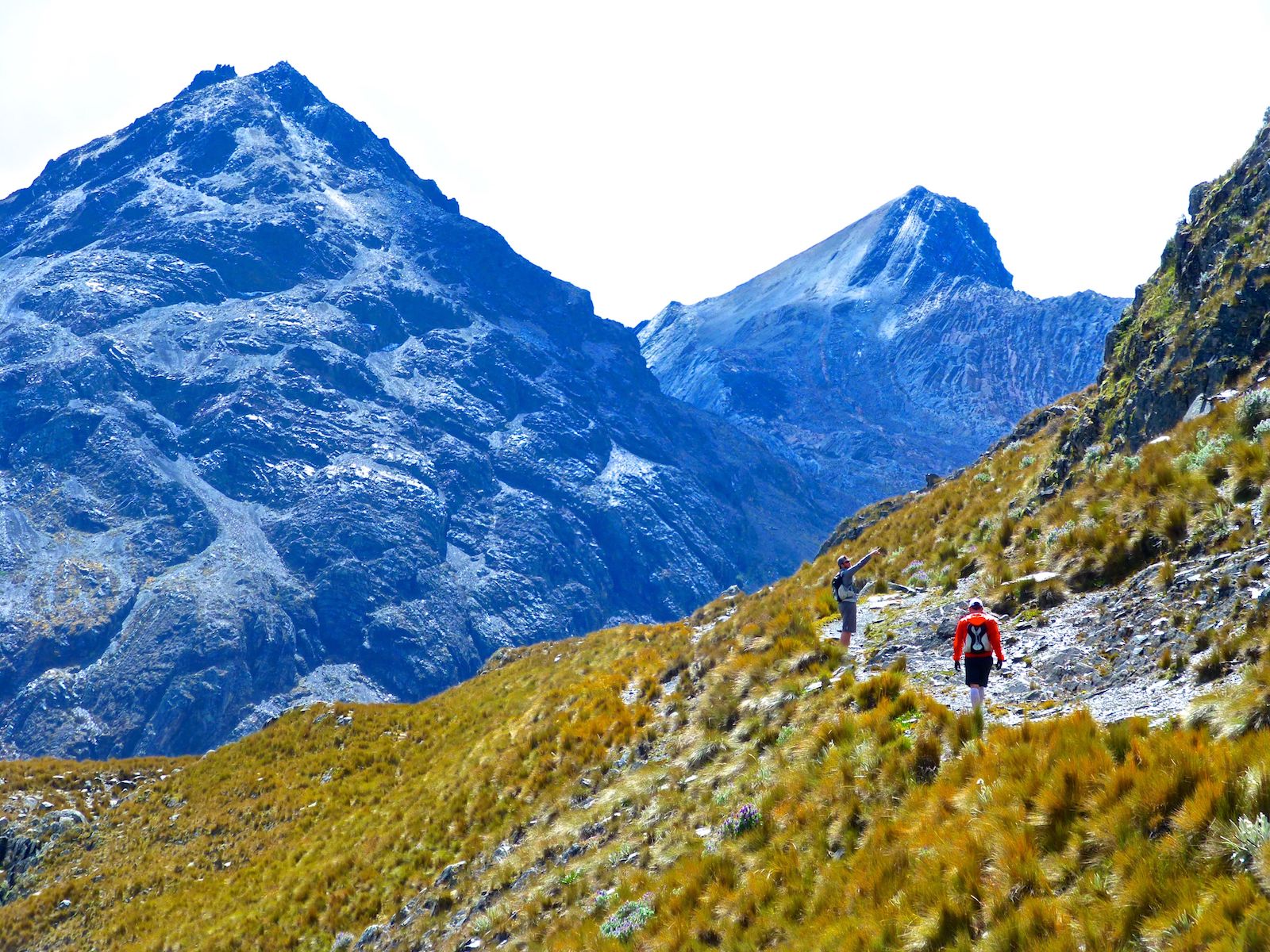This Cordillera Blanca trek not only has some impressive lakes and massive glaciers, but it also allows you to reach 5,100 m (16,732 ft) via Huapi Pass without actually climbing a mountain. Huapi pass is a notch in between the glaciated peaks of Chinchey, measuring in at an impressive 6,309 mt (20,698 ft), Pucaranra at 6,156 mt (20,197 ft), Ranrapalca at 6,162 mt (20,216 ft), and Huapi Mountain just to the right of the pass at 5,421 mt (17,785 ft).